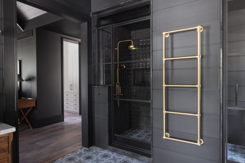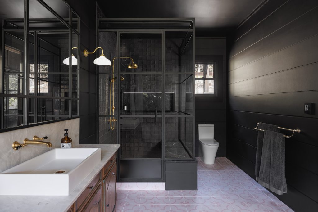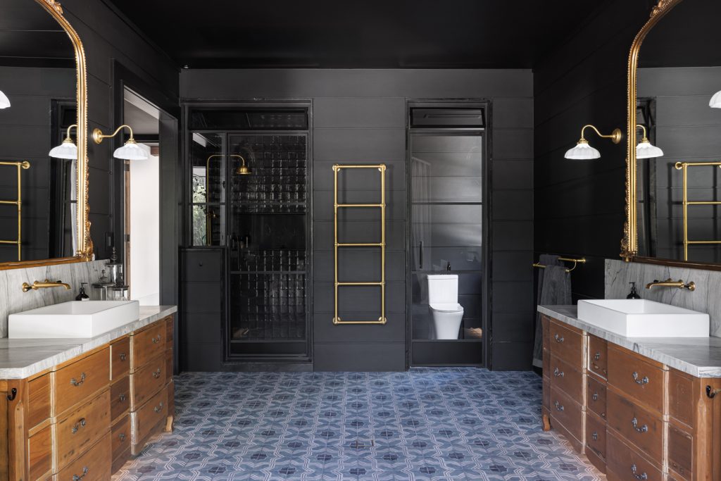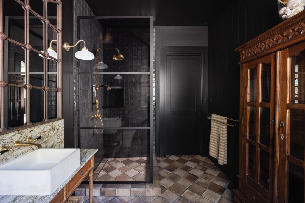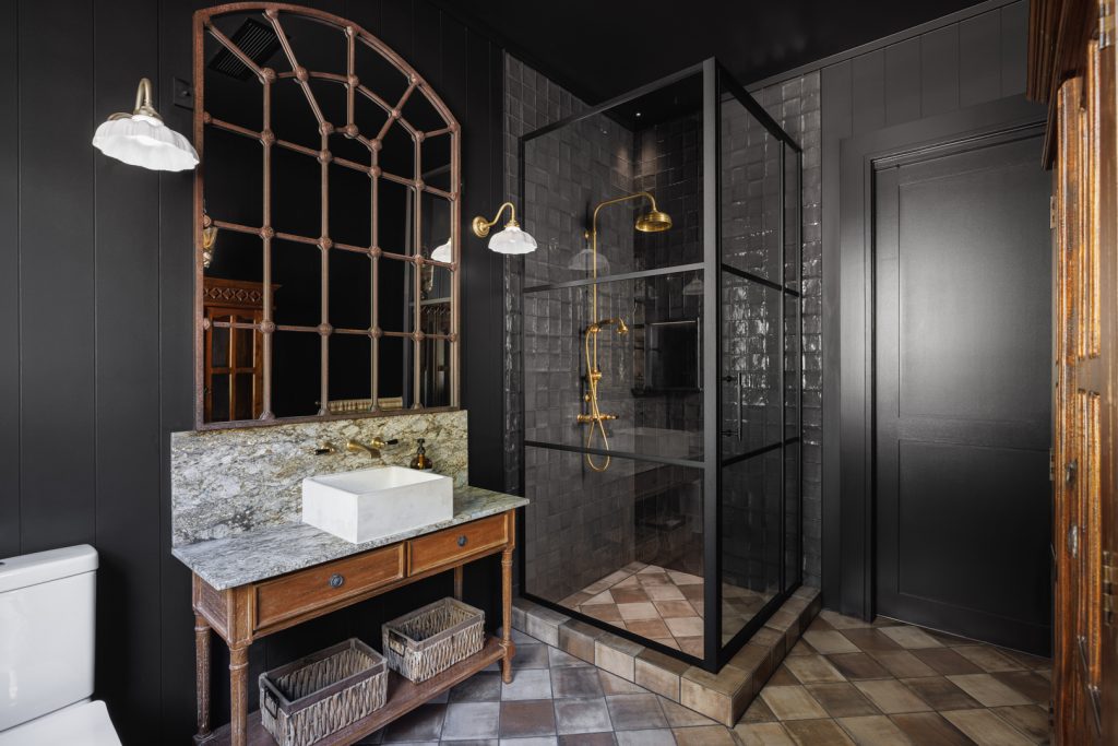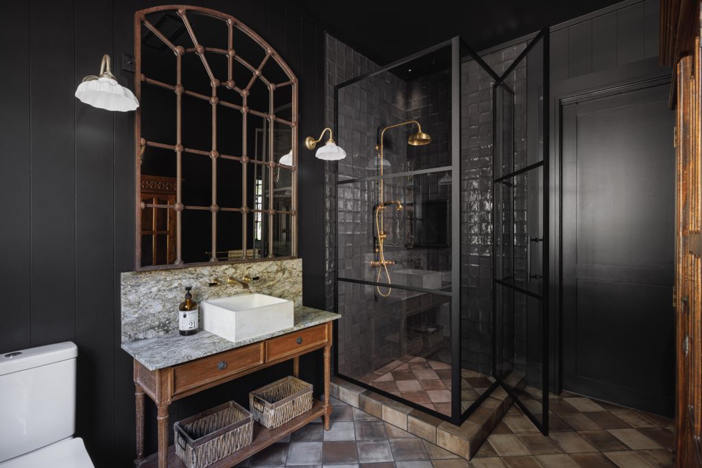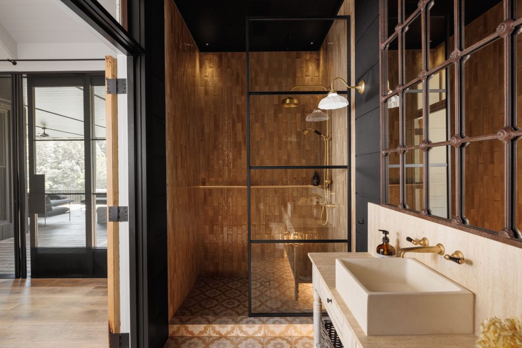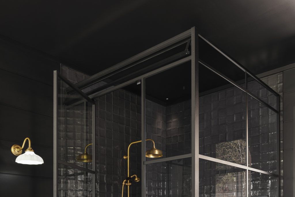 Featuring high-performance, luxury home shower screen systems by Pivotech Architectural, the bathrooms sparkle with touches of glamour in a considered interior design of industrial and peaceful oasis.